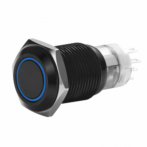 Install Bay - MIBRBSB16 - 16 MM BLACK MOMENTARY SWITCH WITH HARNESS 5A IP67 - BLUE