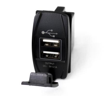 Race Sport RSRSUSBW - LED Rocker Switch 2-Port USB Charge Panel w/ White Radiance